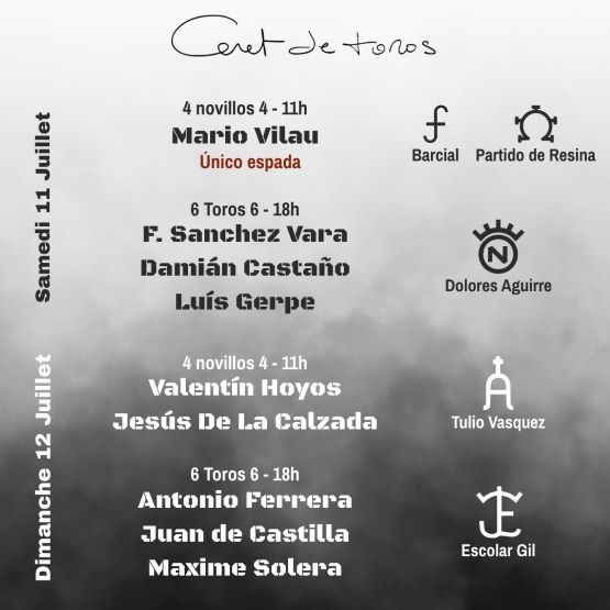 -Samedi 11 juillet à 11h00 : 4 Novillos de Barcial et de Partido de Resina pour Mario Vilau.