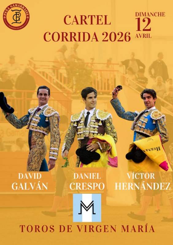 La Peña Gamardaise est ravie de vous annoncer les noms du cartel complet qui affronteront les Toros de Virgen María pour la corrida du 12 avril 2026