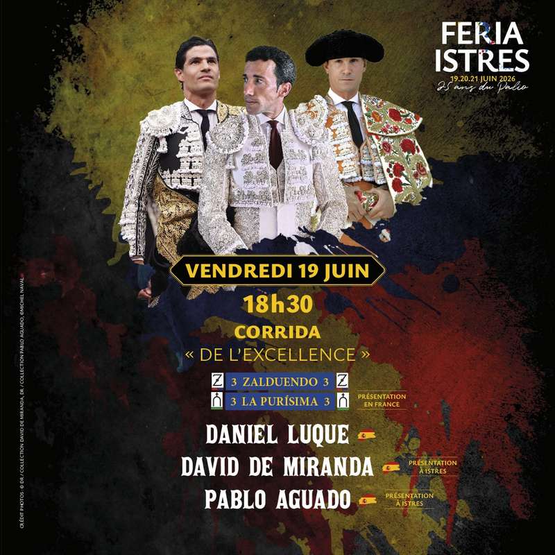 La famille Bailleres avait acquis la ganaderia Zalduendo et vient de créer un nouvel élevage appelé La Purisima. L’an passé, nous vous avions fait découvrir pour le Sud-Est les Montealto. Cette année ce sera, donc, La Purisima. Ce sera aussi la présentation en France et la première fois qu’ils vont lidier en corrida de toros. Un des « sementales » de cette ganaderia, formée à partir de l’élevage de Nuñez del Cuvillo, est familié à Istres. Incroyable histoire ! En effet, en 2016, Enrique Ponce avait gracié « Esparraguero ». Daniel Luque, que l’on ne présente plus, revient à Istres. Lui qui fait partie du haut du tableau se bonifie avec le temps. Si très jeune ce fut un prodige, il connut la traversée du désert. Son mérite : d’avoir remonté la pente pour aller encore plus loin. Il est au sommet de sa carrière et représente aujourd’hui le torero qui, techniquement, est capable de dominer et de s’adapter à 95 % des différents comportements des toros. Un sacré Maestro ! Début sur le sable du Palio du jeune Sévillan Pablo Aguado. Artiste jusqu’aux bouts des ongles, Aguado a réalisé, en 2025, sa meilleure temporada. À Nîmes, lors de la dernière feria des Vendanges, les aficionados furent témoins d’un véritable chef d’œuvre ! Il donne un cachet particulièrement artistique à ce cartel d’ouverture. Un autre matador débutera au Palio également, il s’agit de David de Miranda. Ce jeune torero de Huelva a explosé en 2025. Il ouvrit la Porte du Prince à Séville et ne s’arrêta plus de triompher dès qu’il en eut l’occasion. Les aficionados ont été impressionnés par sa faena à Malaga entre autres. L’aficion a envie de le voir. Istres le propose cette année accompagné par son nouvel apoderado Enrique Ponce, que l’on sera heureux de retrouver à Istres.
