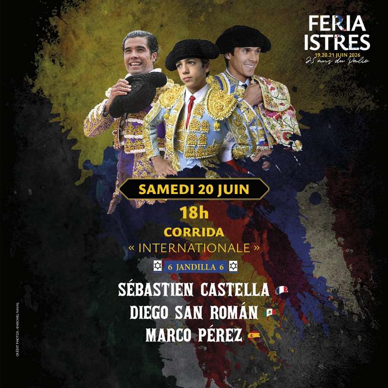 Cartel international dont on attend énormément, arbitré par les toros de la ganaderia Jandilla qui a souvent « lidié » avec succès au Palio. Le chef de lidia est français, figura. Sébastien Castella inaugura les arènes du Palio en 2001 et il était légitime qu’il revienne à Istres, n’ayant pas toréé l’an passé chez nous. Nul ne peut douter qu’il ne voudra en aucun cas se laisser gagner la partie par les deux jeunes loups qui l’accompagneront au paseo. Castella a fêté l’an passé ses 25 ans d’alternative. Il se paya même la gaufre de terminer sa saison en trombes. Zaragoza pour le Pilar et Lima au Pérou, où il remporta son 5e « Escapulario de Oro » en tant que triomphateur de la feria devançant ainsi le numéro un et enfant du pays Andrès Roca Rey. L’an passé, nous vous avions fait découvrir un jeune matador mexicain, Diego San Román. Il triompha au Palio et fut grièvement blessé puisqu’il se sectionna avec l’épée de mort le tendon d’Achille, perdant ainsi des contrats importants. Il se fit opérer, chez lui, au Mexique et put de manière surprenante reprendre le chemin des arènes au bout de trois mois. Incroyable ! Il toréa à Salamanque, Arles et fût exceptionnel à Logroño, démontrant ainsi qu’il fallait vraiment compter sur lui pour 2026. Sa saison hivernale se poursuit en Amérique du Sud où il enchaîne les triomphes. Enfin, Marco Perez revient dans l’arène qui le vit débuter en novillada formelle. L’an passé, il toréa, chez nous, avec son propre apoderado, Juan Bautista. Blessé à Alicante juste après Istres, il perdra une dizaine de courses mais finira toutefois sa temporada avec 30 corridas pour 66 oreilles et 6 queues. Là aussi, à Nîmes, il connut un triomphe retentissant en ouvrant la Porte des Consuls après avoir coupé une queue dans l’enthousiasme général et sous un vrai déluge. Istres est ravie de l’accueillir à nouveau.