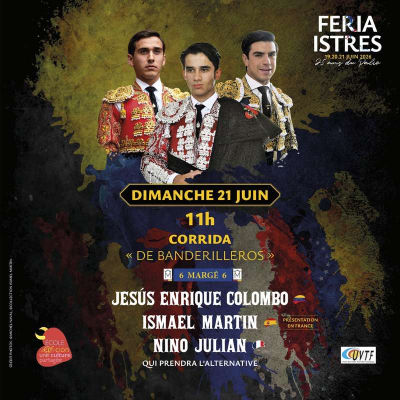 On ne présente plus l’élevage de Robert Margé qui, au fil du temps s’est hissé parmi les ganaderias françaises des plus prestigieuses. L’élevage fit sa présentation en 2023 à Madrid, avec un lot très sérieux. En France, les toros de Margé ont marqué l’histoire de ces dernières années dans des arènes comme Nîmes, Béziers, Mont-de-Marsan, Bayonne ou Dax, pour ne parler que d’arènes de 1re catégorie. La passion, la persévérance et une sélection rigoureuse ont consolidé et consacré la ganaderia que Robert et son fils Olivier ont su forger. C’est avec plaisir que nous les retrouverons sur le sable du Palio. Le Vénézuélien Jesús Enrique Colombo avait triomphé de manière spectaculaire l’an passé. Son envie de plaire, cette manière de banderiller avec force, ses progrès muleta en main et ses estocades spectaculaires en font une valeur sûre dans un cartel. Il donnera l’alternative à un jeune Français et c’est aussi une belle histoire. En Amérique du Sud, il est une véritable idole. En Espagne, c’est à Pamplona qu’il est adulé et Istres a souhaité le reprogrammer dans ce cartel de la jeunesse. Un nouveau matador fera aussi ses débuts en France. N’est-ce pas le rôle d’une arène de présenter de nouveaux talents ? Ismael Martin a pris son alternative en 2024. C’est un tout jeune matador ! Torero complet, il commence à entrer dans ce cartel dit de « banderilleros ». Dans l’esprit de cette corrida, il correspondait parfaitement à notre vision des choses. Triomphant quasiment partout en 2024, la presse l’encensa après son début à Madrid. Salamanque et Zaragoza furent ainsi témoins de son ascension. Nino Julian débuta à Istres en novillada piquée où il y triompha. Sa trajectoire de novillero n’a pas été facile, affrontant tous les encastes et restant fidèle à sa tauromachie communicative. À Madrid, l’été dernier, il laissera l’image d’un novillero valeureux et digne. À Parentis, Tarascon et à Orthez, face à des novilladas sérieuses, Nino triompha ! Le temps de passer à l’échelon supérieur est arrivé. Istres devient la scène idéale pour y accueillir un nouveau matador de toros français, le 77e ! Ce sera la 5e alternative de l’histoire à Istres !