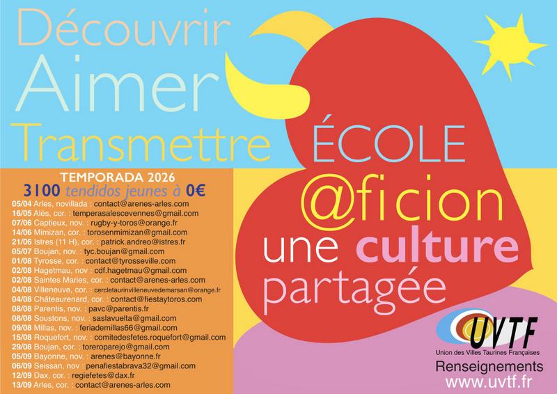 Pour la cinquième année consécutive, l’École d’Aficion offre la possibilité aux moins de 25 ans d’assister gratuitement à 20 spectacles dans des arènes du sud-ouest et du sud-est !!