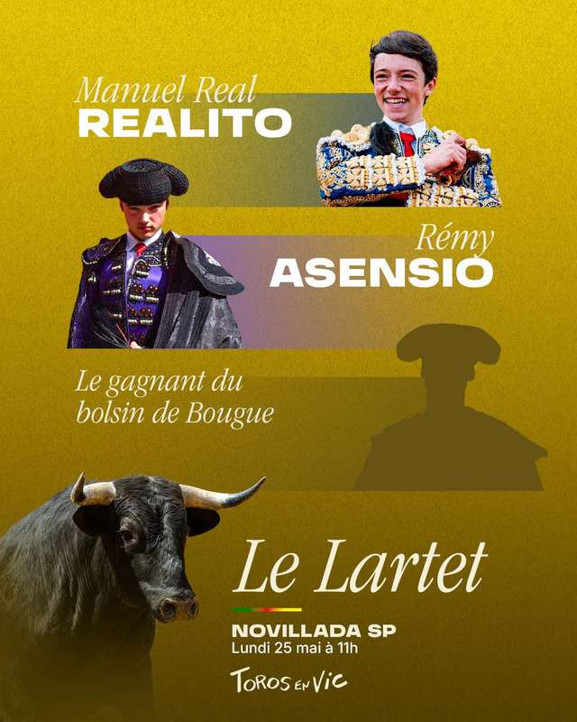 -11h : novillada non piquée – LE LARTET pour Manuel Real « Realito », Remy Asencio et le triomphateur de Bougue