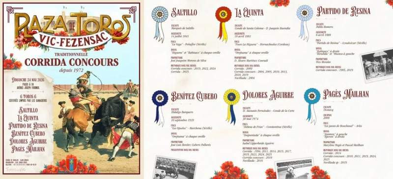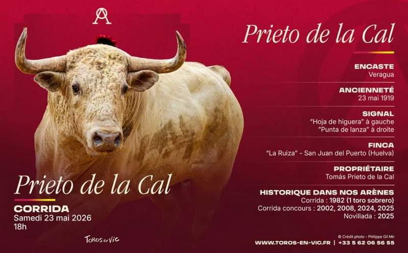 Le Club Taurin Vicois a le plaisir de vous dévoiler la liste des ganaderias retenues pour la prochaine Feria Toros en Vic, qui se tiendra du samedi 23 au lundi 25 mai 2026. Fidèle à son identité et à son exigence, la programmation 2026 place la diversité des encastes au cœur des arènes Joseph Fourniol, avec la présentation de 10 encastes différents sur l’ensemble du cycle. Cette édition s’articule aussi autour d’un double objectif : offrir aux aficionados la découverte de fers inédits à Vic et célébrer le retour de ganaderias ayant marqué l’histoire récente et ancienne de notre ruedo.